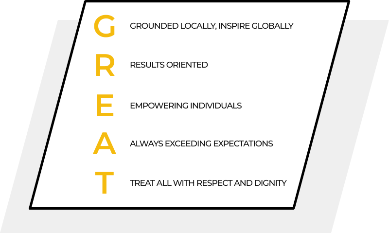 The guiding principles that help define how we behave. At Crescendo Corporation Berhad, let’s make it G.R.E.A.T.